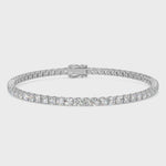 The Lunaria Tennis Bracelet is a radiant expression of modern grace. Featuring a seamless row of lab-grown white diamonds totaling 5.65 Ct, this bracelet captures attention with every flick of the wrist. Designed with two size options—2.69 Ct of 2.80 mm diamonds and 2.96 Ct of 3.00 mm diamonds—you can choose your sparkle style based on your personal preference.