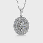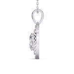 Step into a realm of refined elegance with the Seraphina Radiant Halo Pendant, a masterful union of delicacy and dazzle. At its heart glows a 1.03 Ct pear-shaped lab-grown diamond (8.2mm x 5.5mm), gently cradled in claw prongs, radiating soft brilliance. Surrounding it, two shimmering halos of fine round-cut lab diamonds (1.30mm to 1.50mm) total 0.51 Ct—artfully arranged in a split prong setting to enhance depth and dimension.