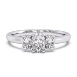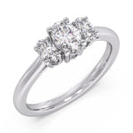 An elegant oval lab diamond centre framed with matching oval side stones for a soft, romantic finish.