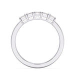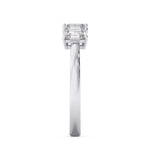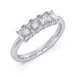 Sharp emerald-cut diamonds aligned in a refined five-stone statement ring.