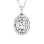 Crafted in your choice of 9K, 14K, 18K gold or platinum, the oval diamond is set in classic claw prongs while the surrounding round stones are delicately nestled in a split prong halo—perfectly balancing minimalism with bold luxury. Ideal for bridal elegance, cherished gifting, or daily sophistication, this pendant is a radiant statement of ethical refinement.
