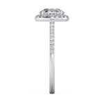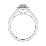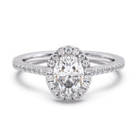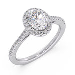 A graceful solitaire ring showcasing a 0.75 Ct oval shaped F-VS lab grown diamond, finished with split prong side accents for a soft, elegant sparkle.