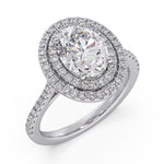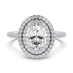 A bold oval 1.50 Ct fancy cut lab diamond, enhanced with shimmering split prong stones for a radiant, high-jewellery finish.