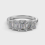 Sophistication finds its form in the Veloura Crest Ring—a masterfully designed 5-stone lab-grown diamond ring featuring emerald-cut brilliance across a graceful graduation. Anchored by a 0.64 Ct (5.40mm x 3.85mm) center stone and flanked by 0.51 Ct (4.50mm x 3.20mm) and 0.42 Ct (4.00mm x 2.85mm) diamonds, it reflects poise, clarity, and bold linear beauty.